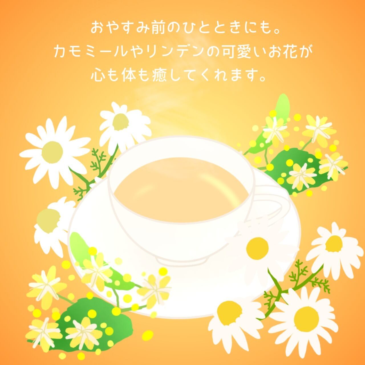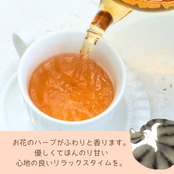 カモミールやリンデン、オレンジフラワーなどのお花を贅沢にブレンドした甘いリラックスティーです。