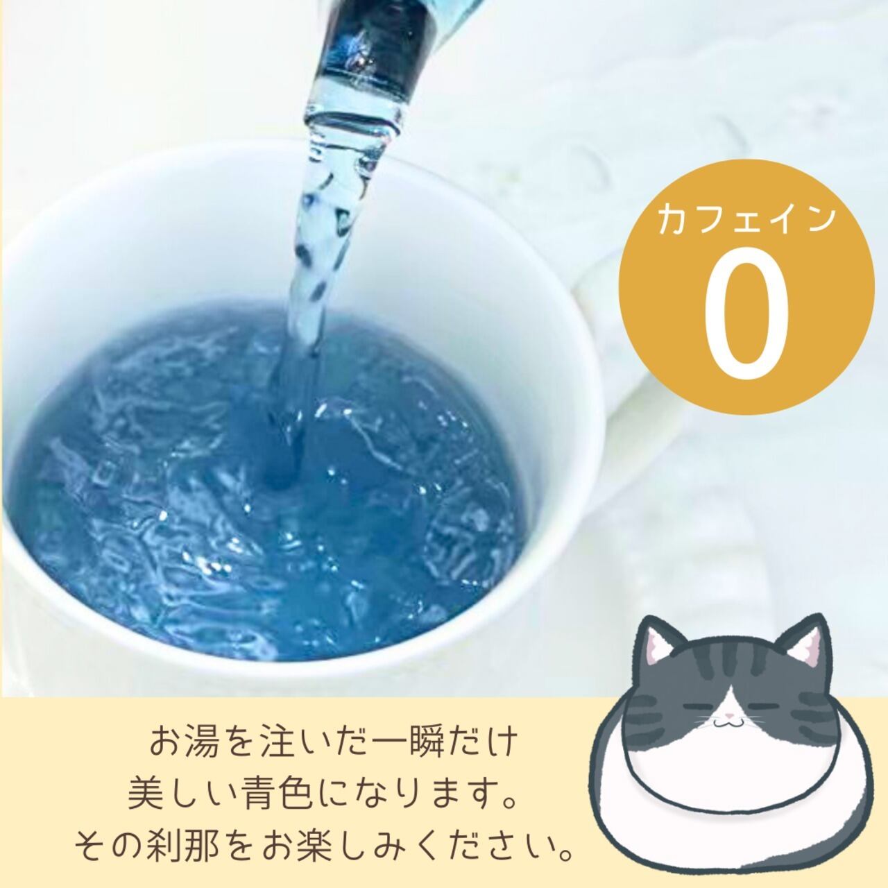 お湯を注いだ瞬間に青空のような美しい青色になり、一瞬だけティーが美しい水色に変わる特別な瞬間も楽しめます。