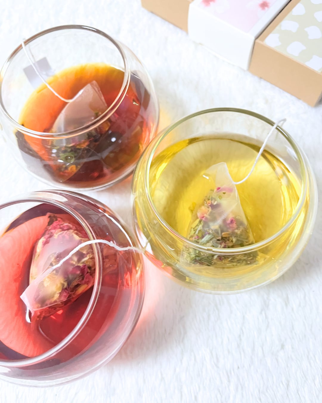 櫻葉(国産)、ローズレッド、ジャスミン、ステビア、ハイビスカス、レモングラス、ヒース、エルダーフラワー、よもぎ